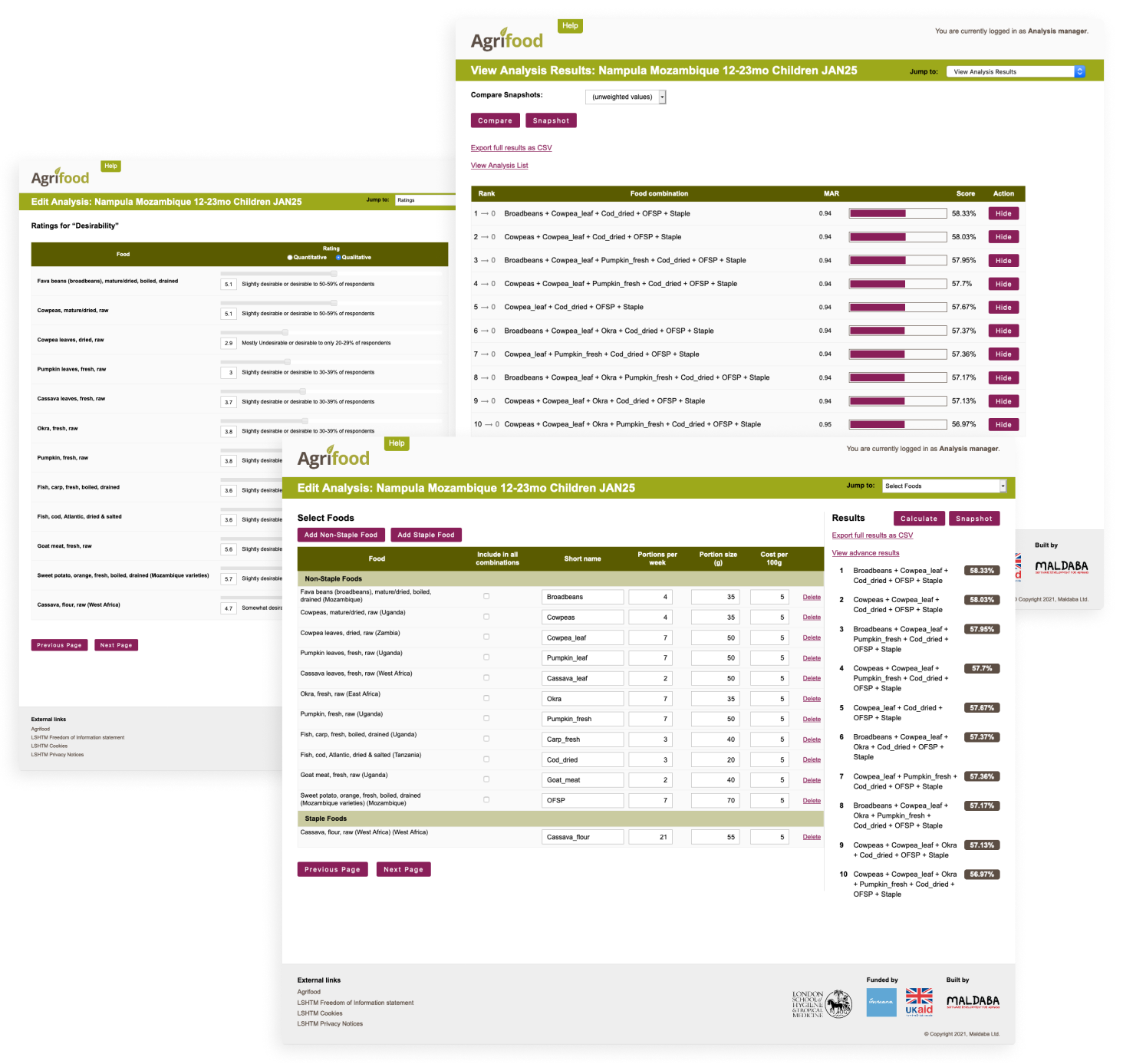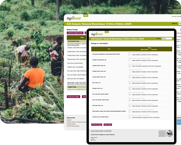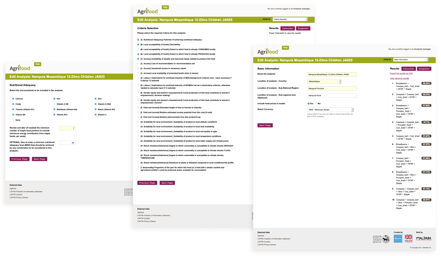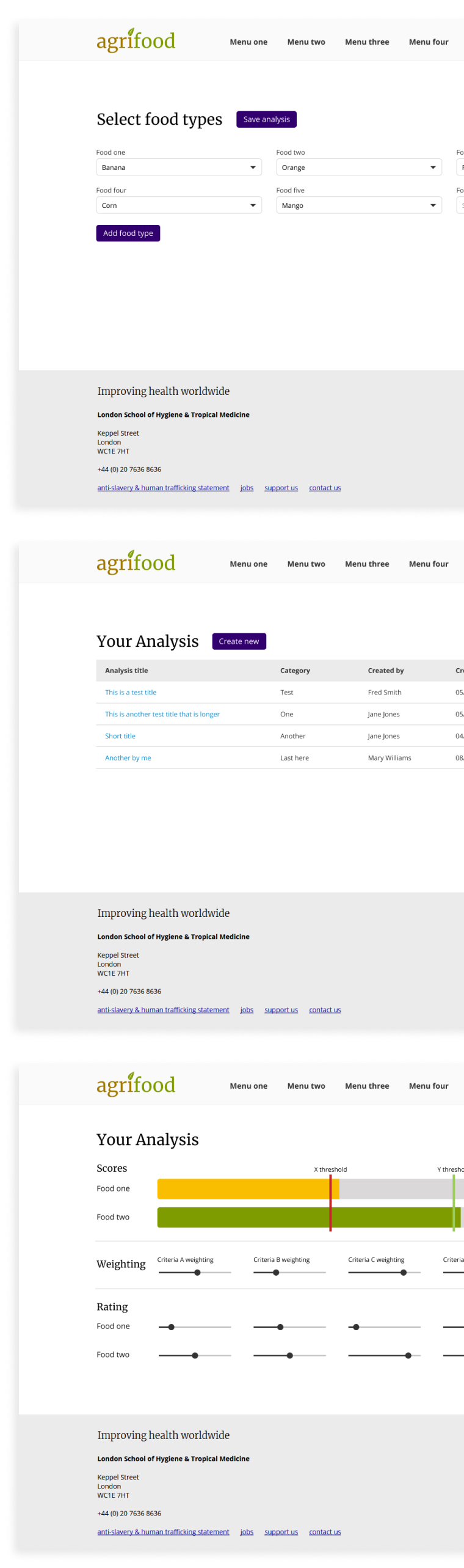 Having previously worked with The London School of Hygiene & Tropical Medicine (LSHTM) we designed and built Agrifood, a complex tool to calculate optimum nutrient output based on geographical and social factors, climate conditions and crop availability.